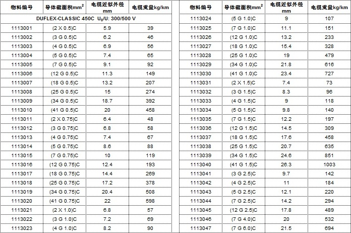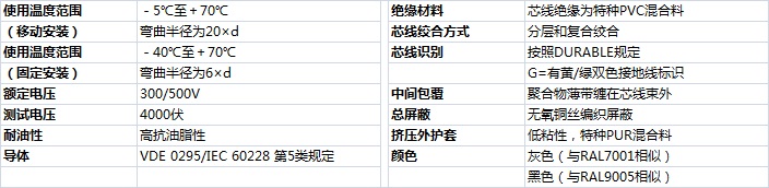 加強型耐油和冷卻液PUR護套彩色芯線屏蔽柔性控制電纜技術(shù)參數(shù)  電纜規(guī)格