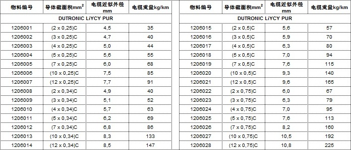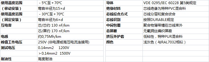 加強(qiáng)型耐油和冷卻液PUR護(hù)套柔性數(shù)據(jù)傳輸屏蔽電纜技術(shù)參數(shù)  電纜規(guī)格