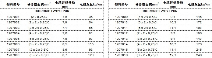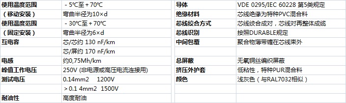加強(qiáng)型耐油和冷卻液PUR護(hù)套對絞柔性數(shù)據(jù)傳輸屏蔽電纜技術(shù)參數(shù)  電纜規(guī)格