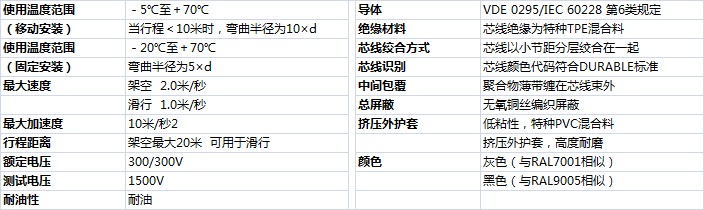 技術參數VeJ拖鏈電纜-卷筒電纜-高柔性坦克鏈電纜廠家