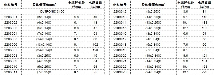 實用型PVC護套屏蔽高柔性數據電纜(內護型)技術參數  電纜規格