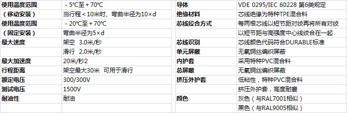 實(shí)用型PVC護(hù)套對絞分總屏蔽高柔性數(shù)據(jù)電纜(內(nèi)護(hù)型)技術(shù)參數(shù)  電纜規(guī)格