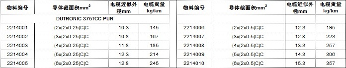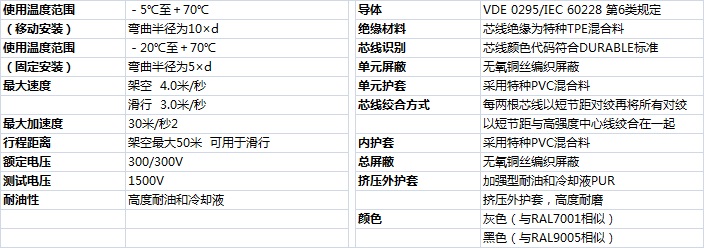 加強(qiáng)型耐油和耐冷卻液PUR護(hù)套對(duì)絞分總屏蔽高柔性數(shù)據(jù)電纜(三層護(hù)套)技術(shù)參數(shù)  電纜規(guī)格