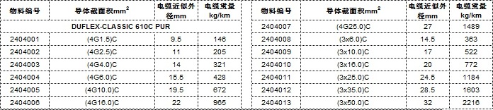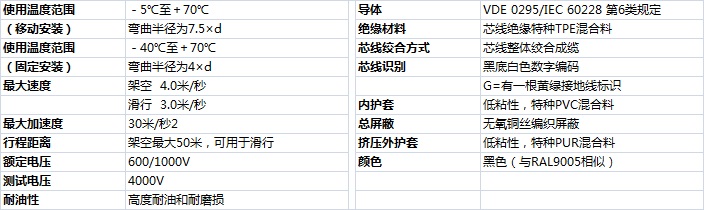 加強(qiáng)型耐油和冷卻液PUR護(hù)套屏蔽動(dòng)力電纜(內(nèi)護(hù)型)技術(shù)參數(shù)  電纜規(guī)格