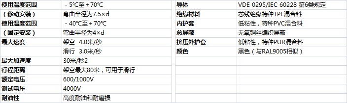技術參數GeE拖鏈電纜-卷筒電纜-高柔性坦克鏈電纜廠家
