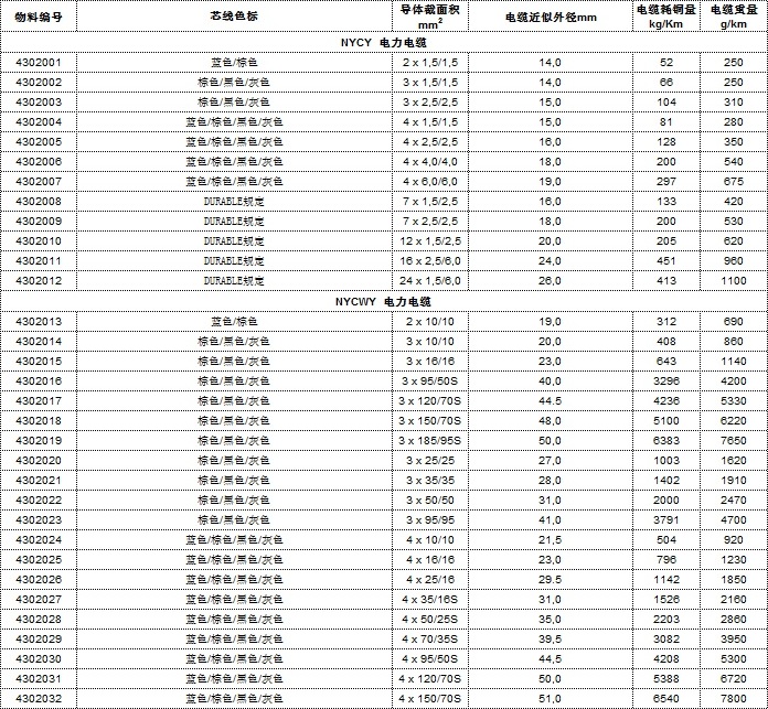 屏蔽動(dòng)力電纜0.6/1KV技術(shù)參數(shù)  電纜規(guī)格