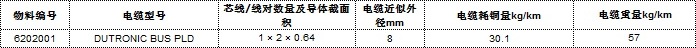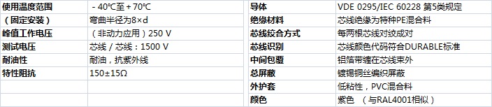 固定安裝使用技術(shù)參數(shù)  電纜規(guī)格
